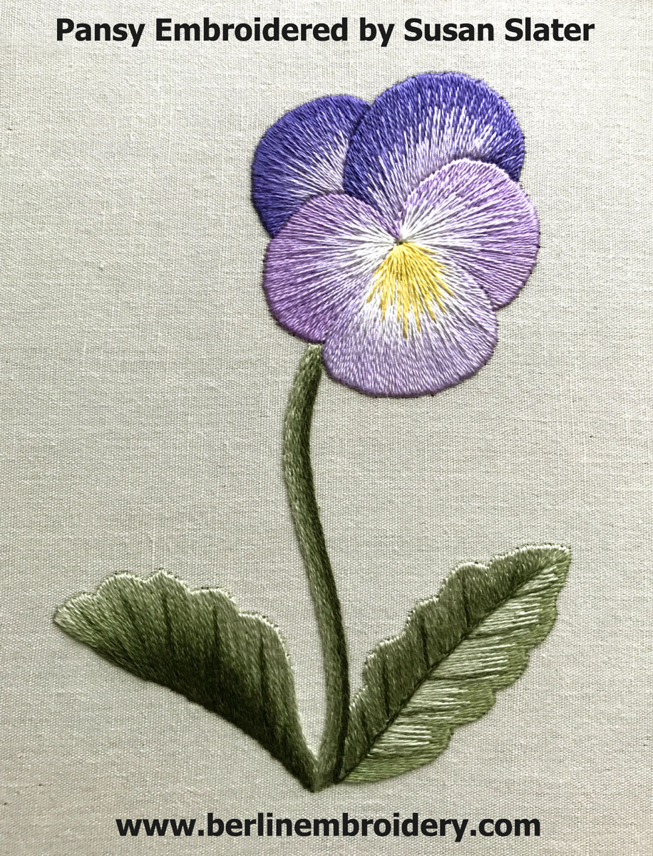 Susan’s Clear Purple Pansy embroidery.