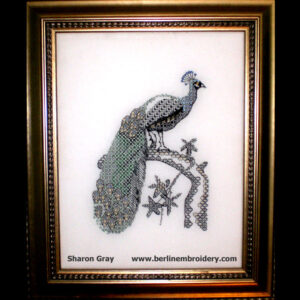 The instructions are written with the beginner in mind and the kit comes with all the supplies required to stitch the peacock and a choice of counted ground fabric.