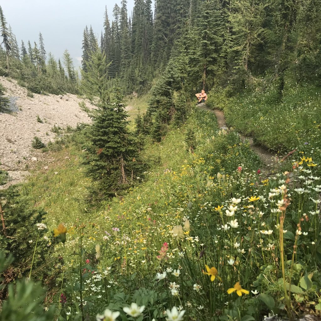 The purple flowers are thistles, so we will be avoiding this area in the fall 🙂