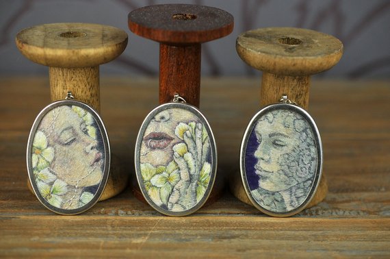 I have three pendants and four brooches available.