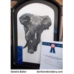 One of the four designs that I have on show is the Blackwork Elephant. This piece took me a year to stitch, over 200 hours of designing and stitching and I am really proud of this piece as I believe it is a true piece of art in technical needlework.