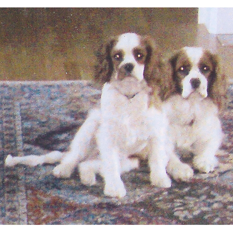 Charlie and Riley are King Charles Cavalier Spaniels one is two years old and the other is ten months old and were commissioned to be stitched as a pair in the technique of needle painting.