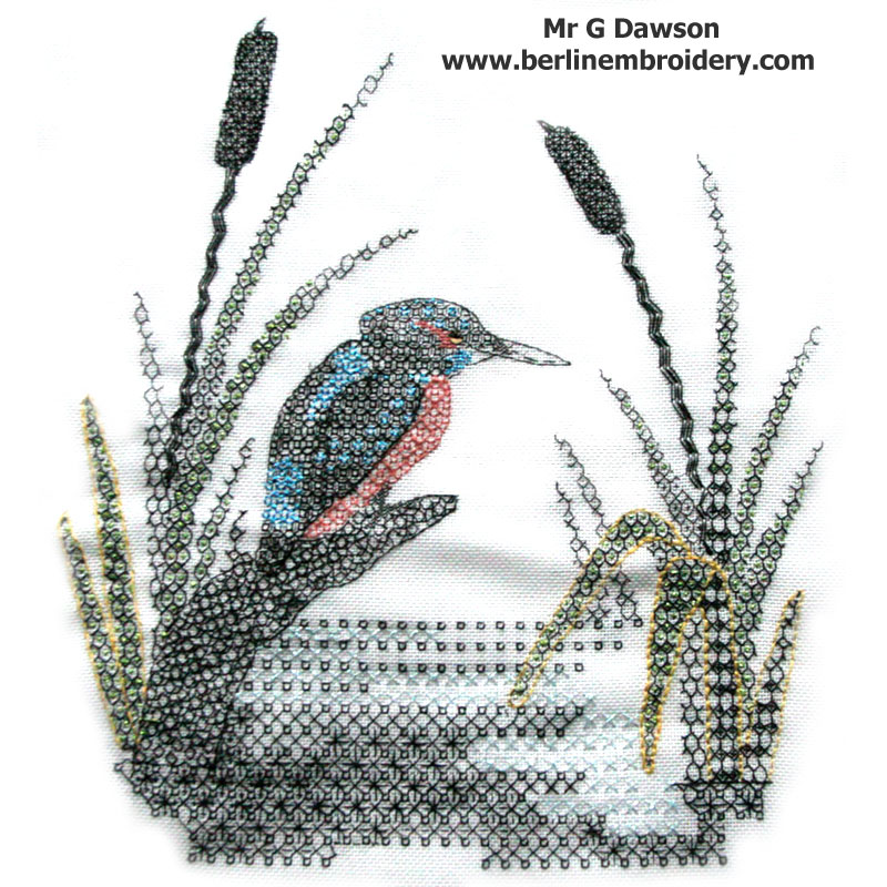 The Blackwork Kingfisher was Stitched by Mr G Dawson at 87 Years of Age in the UK