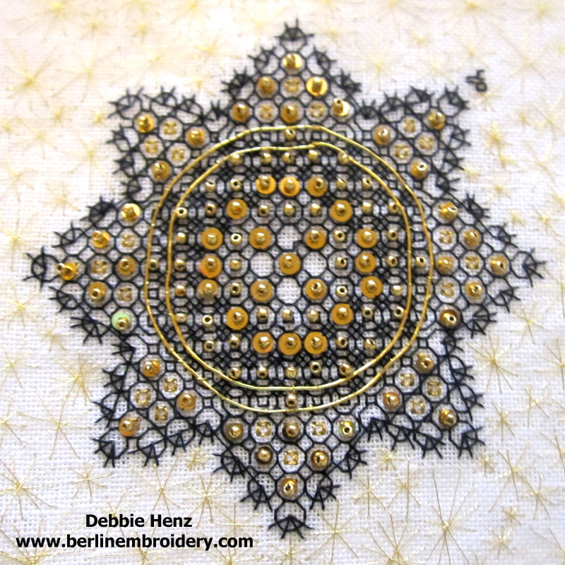 The star was added to cover a pencil smudge, very appropriate since I thought I deserved at least a silver star for completing the piece. If it had been my own design (oh, how I wish), I would have deserved a gold star, which is what Tanja deserves for her designs.”