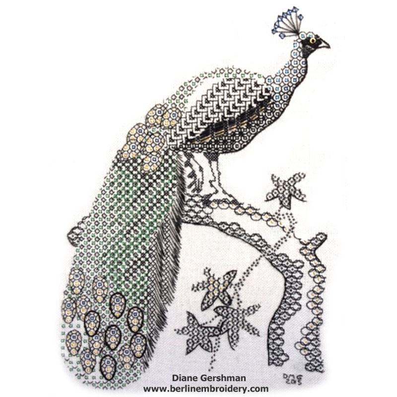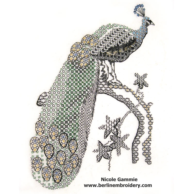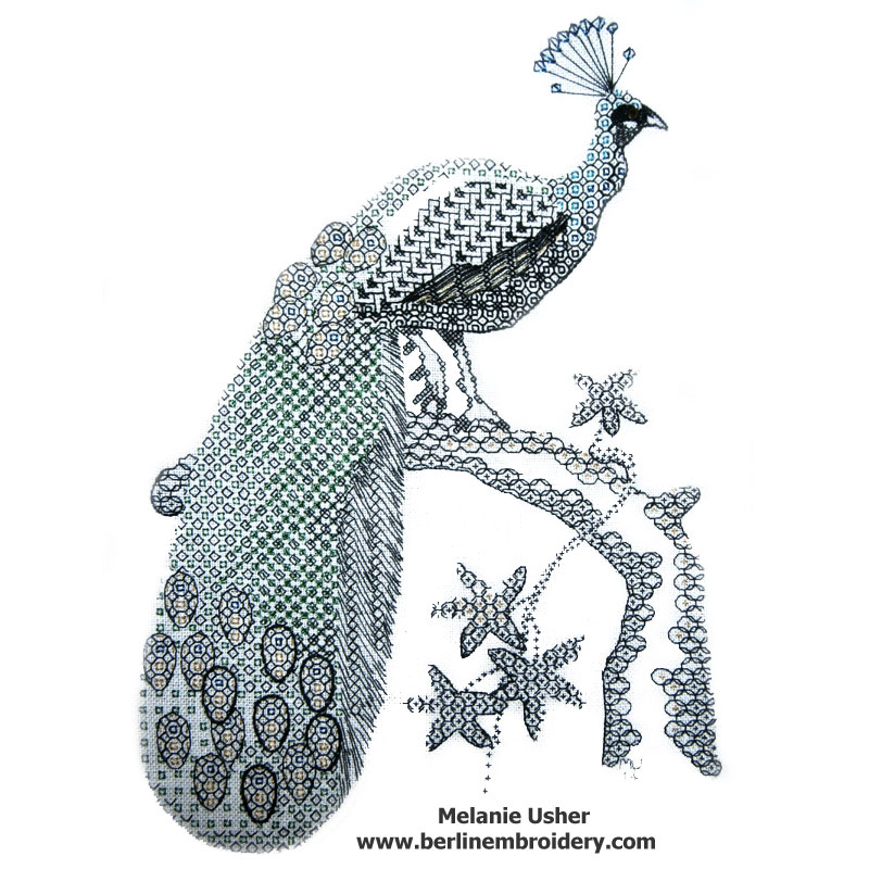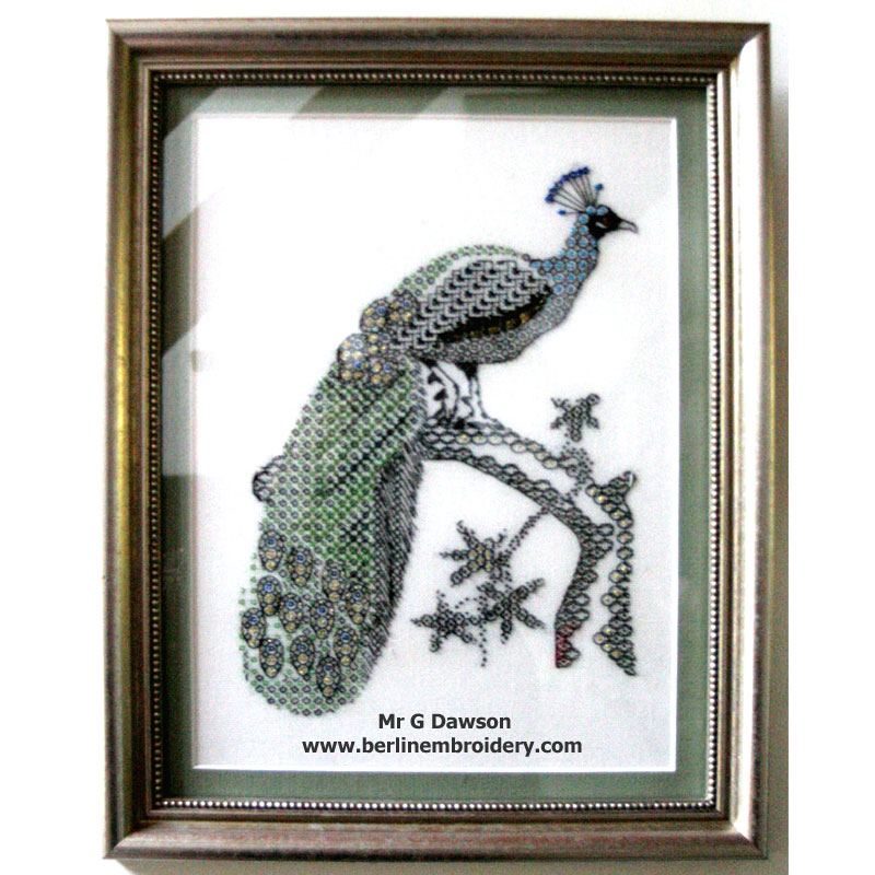 The Blackwork Peacock was Stitched by Mr G Dawson at 85 Years of Age in the UK