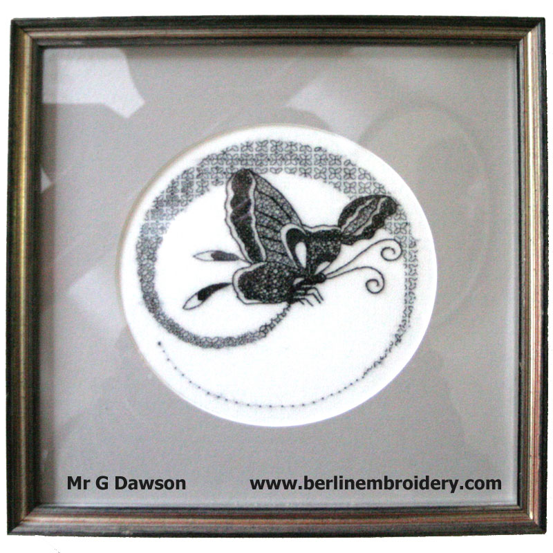 At the age of 84 Mr G Dawson stitched the Blackwork Butterfly.