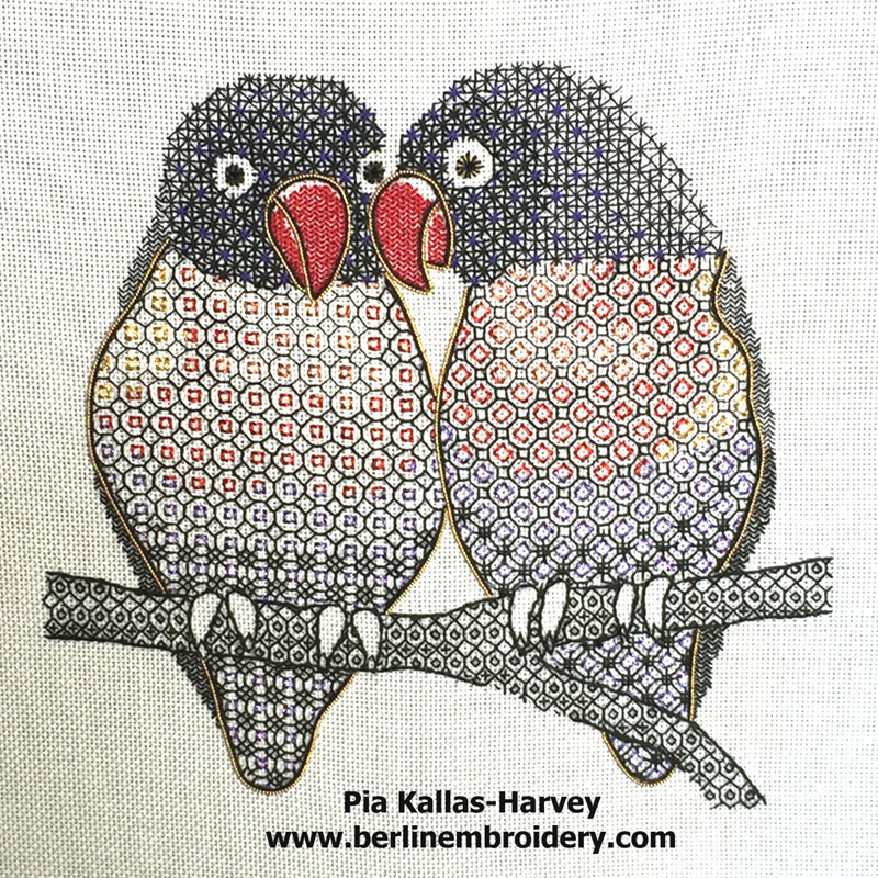 “I thoroughly enjoyed stitching the Lovebirds. I loved how they came to life with the multiple stages of the stitching and the colours!”