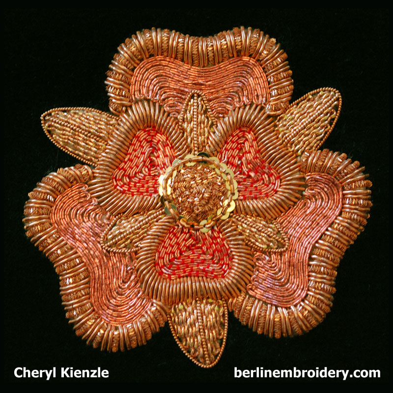 Copper Tudor Rose Stitched by Cheryl Kienzle in Nova Scotia, Canada