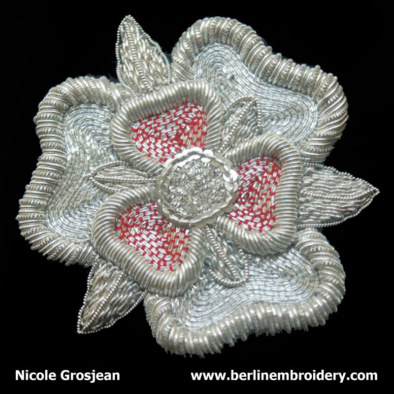 Silver Tudor Rose Stitched by Nicole Grosjean in Colorado, USA