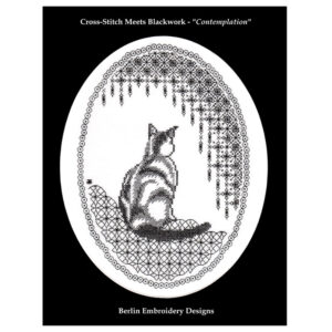 The Contemplation Cat is worked from a chart and has a detailed instruction booklet which has step-by-step numbered diagrams and instructions to guide you through the blackwork patterns. The embroidery can be worked in colour if you do not like black.