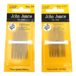 Milliners or Straw needles are long needles that have a straight short eye. The needle is a consistent width for the length of the needle including the eye which makes the needle ideal for creating even bullion knots.
