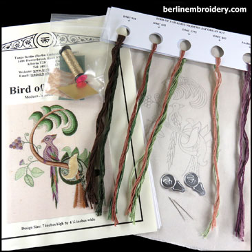 The Jacobean Tree with Bird is an advanced crewel surface embroidery technique. I am discontinuing this kit.