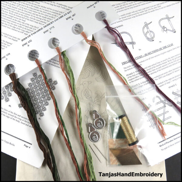 In the kit I provide a detailed instruction booklet with lots of step-by-step diagrams and instructions on how to work each stitch.