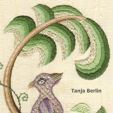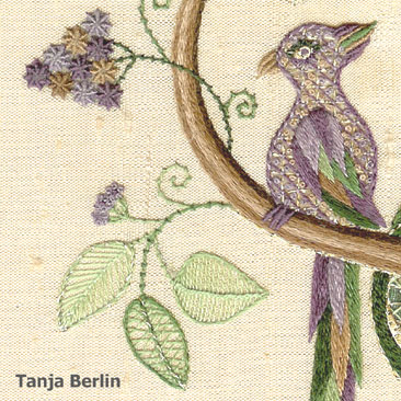There are 22 surface embroidery stitches worked on the Bird of Paradise design.