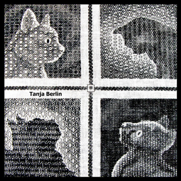 Each cat has its own blackwork pattern, dimension is created by changing the thickness of the thread and changing the density of the pattern.