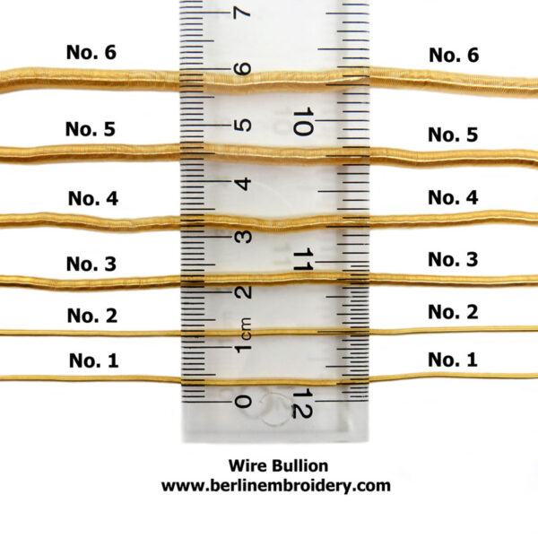 - No. 1 Wire Bullion: Approximately 1 mm across the width of the thread.