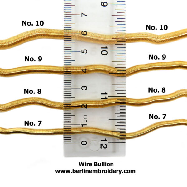- No. 10 Wire Bullion: Approximately 5.5 mm across the width of the thread.
