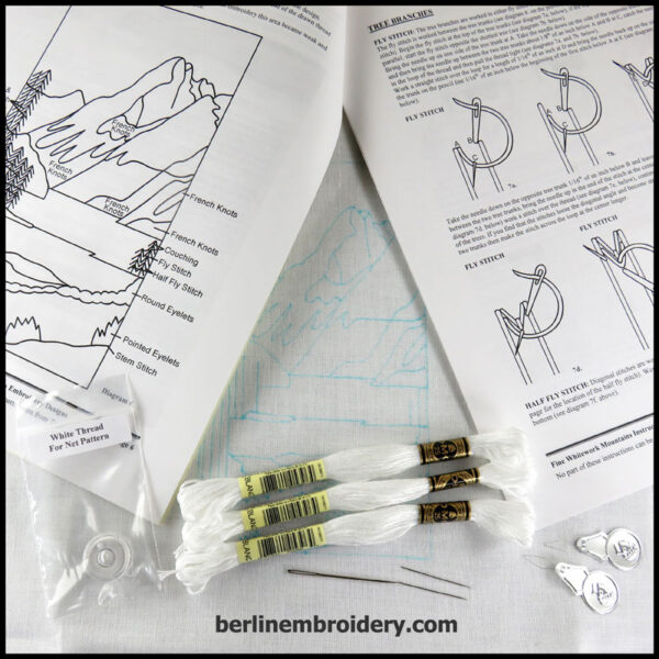 The Fine White Work Mountains is an intermediate design. I no longer carry a kit for this design but you can provide your own supplies and purchase a hard copy of the instructions (16 pages) or download a PDF file of the instructions.