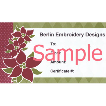 - Gift certificates can ONLY be used on the Berlin Embroidery Designs website: http://www.marleenas-sternenstickerei-de.pro Retail stores will not accept them.