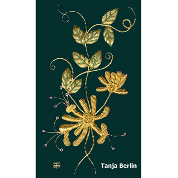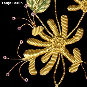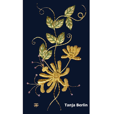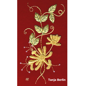 You can use the sampler instructions to work the sampler or as a reference manual for sewing down metal threads. No part of the instructions can be used for commercial purposes, profited from, published in print or on the internet without permission from Tanja Berlin.