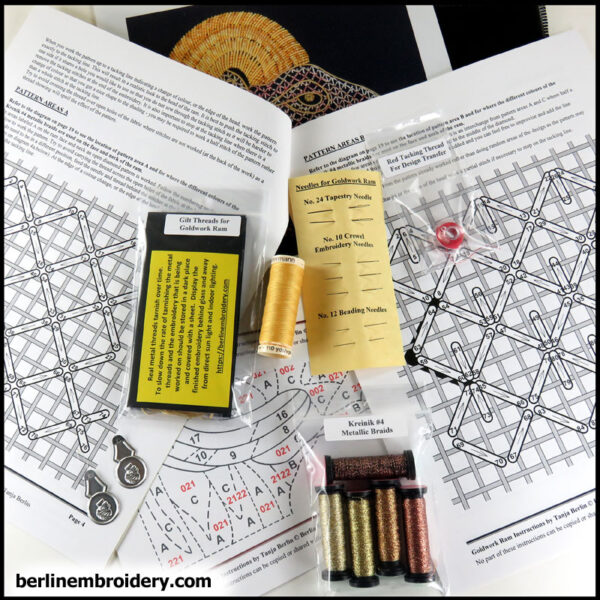 | Goldwork Ram: | Kit with Gold 2% WM Threads, Kit with Gilt Threads |