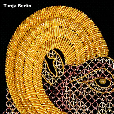 You can use the sampler instructions to work the sampler or as a reference manual for sewing down metal threads. No part of the instructions can be used for commercial purposes, profited from, published in print or on the internet without permission from Tanja Berlin.