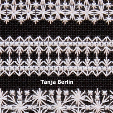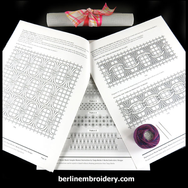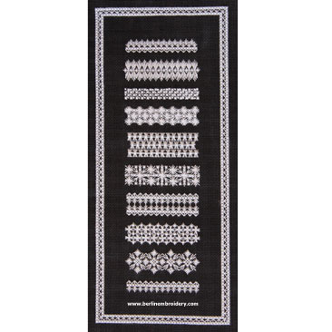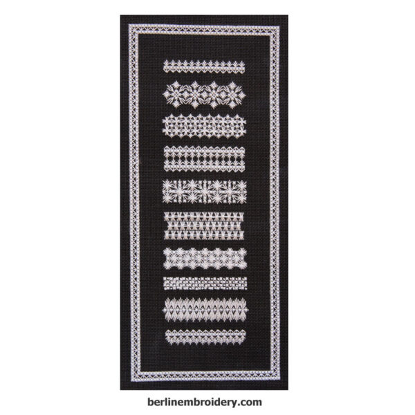 | Hapsburg Lace Mosaic Bands Sampler | Kit with Instruction Booklet – DMC White Cotton Thread and Antique Blue Canvas, Kit with Instruction Booklet – DMC Ecru Cotton Thread and Antique Blue Canvas, Kit with Instruction Booklet – DMC White Perle Cotton Thread and Leventeen Blue Canvas, Kit with Instruction Booklet – DMC Ecru Cotton Thread and Leventeen Blue Canvas, Kit with Instruction Booklet – DMC Ecru Cotton Thread and Antique Blue Canvas, Kit with Instruction Booklet – DMC White Cotton Thread and Black Canvas, Kit with Instruction Booklet – DMC Ecru Cotton Thread and Black Canvas, Kit with Instruction Booklet – DMC White Perle Cotton Thread and Brown Canvas, Kit with Instruction Booklet – DMC Black Perle Cotton Thread and Pewter Canvas, Instruction Booklet |