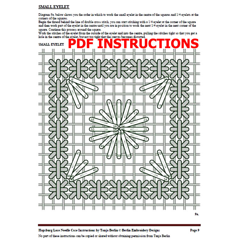 I provide this PDF file for free with the purchase of one of my Canvas Work Needle Case Kits or my Hapsburg Lace Needle Case Kit.