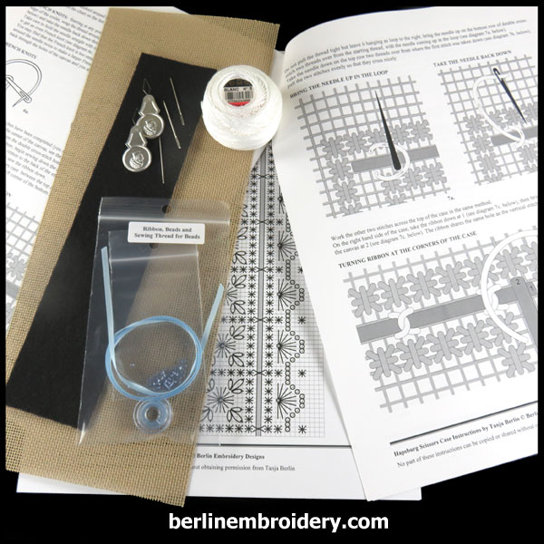| Hapsburg Lace Scissors Case | Instruction Booklet ONLY, Instruction Booklet and Brown Canvas ONLY, Kit with Instruction Booklet – Brown Canvas, White Thread, Blue Ribbon and Beads, Kit with Instruction Booklet – Brown Canvas, White Thread, Pink Ribbon and Beads, Instruction Booklet and Antique Blue Canvas ONLY, Kit with Instruction Booklet – Antique Blue Canvas, White Thread, Blue Ribbon and Beads, Kit with Instruction Booklet – Antique Blue Canvas, White Thread, Pink Ribbon and Beads, Instruction Booklet and Leventeen Blue Canvas ONLY, Kit with Instruction Booklet – Leventeen Blue Canvas, White Thread, Blue Ribbon and Beads, Kit with Instruction Booklet – Leventeen Blue Canvas, White Thread, Pink Ribbon and Beads, Instruction Booklet and Black Canvas ONLY, Kit with Instruction Booklet – Black Canvas, White Thread, Blue Ribbon and Beads, Kit with Instruction Booklet – Black Canvas, White Thread, Pink Ribbon and Beads, Instruction Booklet and Pewter Canvas ONLY, Kit with Instruction Booklet – Pewter Canvas, Black Thread, Blue Ribbon and Beads, Kit with Instruction Booklet – Pewter Canvas, Black Thread, Pink Ribbon and Beads, Additional Supplies: Brown Canvas, Blue Ribbon and Beads, Additional Supplies: Brown Canvas, Pink Ribbon and Beads, Additional Supplies: Leventeen Blue Canvas, Blue Ribbon and Beads, Additional Supplies: Leventeen Blue Canvas, Pink Ribbon and Beads, Additional Supplies: Black Canvas, Blue Ribbon and Beads, Additional Supplies: Black Canvas, Pink Ribbon and Beads, Additional Supplies: Pewter Canvas, Blue Ribbon and Beads, Additional Supplies: Pewter Canvas, Pink Ribbon and Beads |