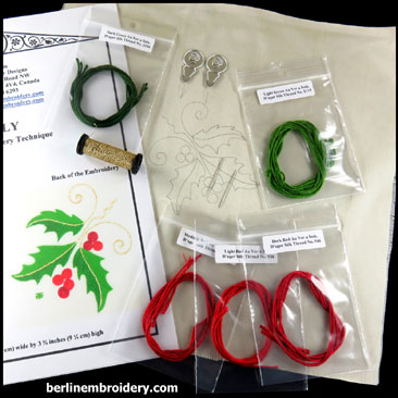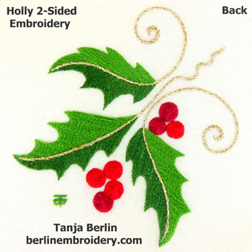 The holly is a great design for learning how to do 2-sided (reversible) embroidery, in which the back looks like the front.