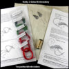 In the kit I provide a detailed instruction booklet with 15 pages of step-by-step diagrams and instructions on how to work each stitch which are reversible so that the back looks the same as the front.