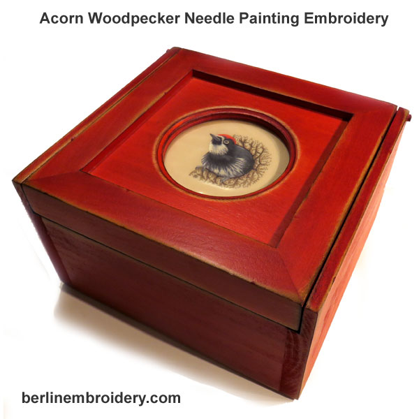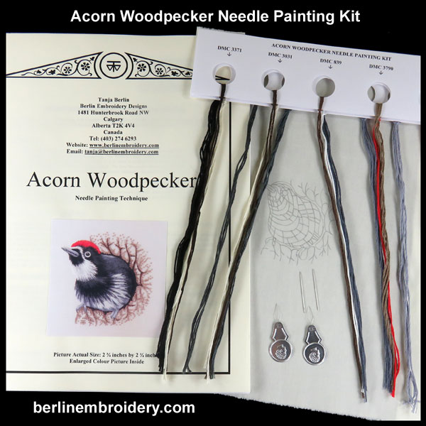 Needle Painting Acorn Woodpecker Kit and PDF File with Colour Work-in-Progress Pictures