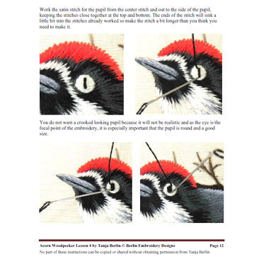 This Kit comes with a free downloadable PDF file with colour work-in-progress photos of the woodpecker but if you are looking to get a fully immersed learning experience to improve your stitching technique I suggest getting the kit and the 4 PDF files option which comes with many more photos and instructions: View Kit Details