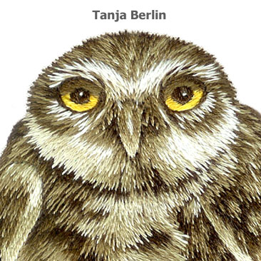 The Burrowing Owl is worked in needle painting also known as thread painting and long and short stitch.