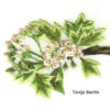 The Chickadee on Blossom Branch is worked in needle painting also known as thread painting and long and short stitch. This is the most realistic form of surface embroidery which is worked in staggered straight stitches in a single strand of embroidery thread on a closely woven fabric, blending rows of colour to create a very realistic embroidery. The sheen of the threads adds to the soft and life like appearance of the bird.