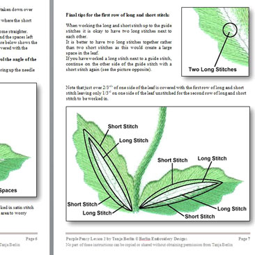 The instructions have step-by-step diagrams for the different methods of sewing down the fabrics and for the surface embroidery stitches to embellish the design.