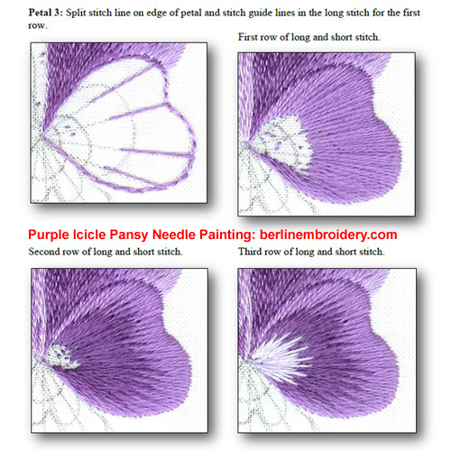 - No suggested design. The purple icicle pansy is the best design to begin needle painting with and I suggest getting the 3 PDF Files with the work-in-progress pictures for an in depth learning of the technique.