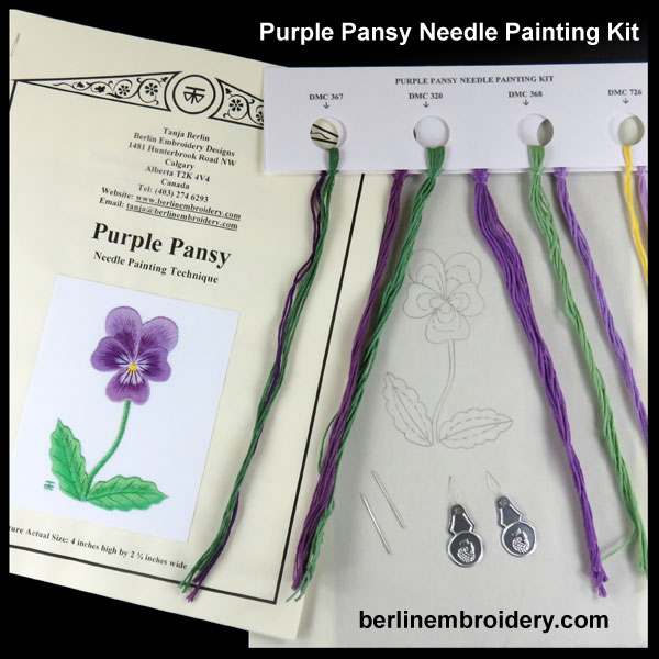 Needle Painting Purple Icicle Pansy Kit and PDF File with Colour Work-in-Progress Pictures