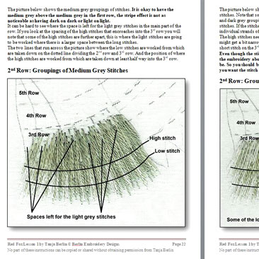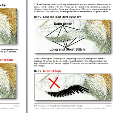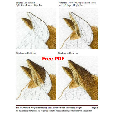 This Kit comes with a free downloadable PDF file with colour work-in-progress photos of the red fox but if you are looking to get a fully immersed learning experience to improve your stitching technique I suggest getting the kit and the 3 PDF files option which comes with instructions: View Kit Details