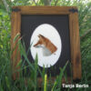 The Red Fox is worked in needle painting also known as thread painting and long and short stitch. This is the most realistic form of surface embroidery which is worked in staggered straight stitches in a single strand of embroidery thread on a closely woven fabric, blending rows of colour to create a very realistic embroidery. The sheen of the threads adds to the soft and life like effect of the fur.