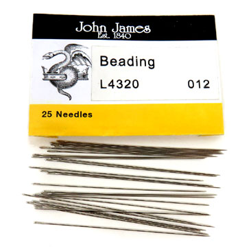 I carry the hard to find short beading needles which are excellent for goldwork embroidery when the size 10 embroidery/crewel needle will not fit through the center of purl or bullion threads. The needles are also good for very fine needle painting/thread painting. The needles are 1 1/4 inch ( 3 1/4 cm) long. The beading needles have a long slender eye for easier threading and a choice of sharp point or tapestry (ball) point. I carry size size 12 (finest).
