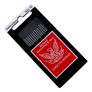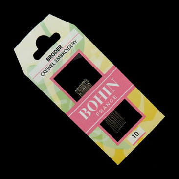 Size 10 are my choice needles for fine surface embroidery in which only one single strand of silk thread or embroidery cotton is used.