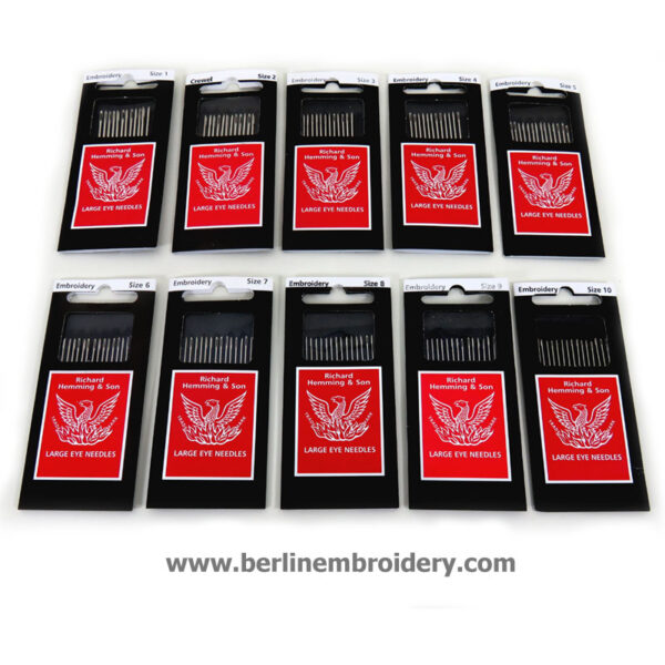 Bohin Size 3 (12 Needles), Bohin Size 5 (15 Needles), Bohin Size 6 (15 Needles), Bohin Size 7 (15 Needles), Bohin Size 9 (15 Needles), Bohin Size 10 (15 Needles), Bohin Size 5/10 (15 Assorted Needles), John James Size 10 (15 Needles), John James Size 12 (15 Needles), Richard and Hemming Size 1 (12 Needles), Richard and Hemming Size 2 (12 Needles), Richard and Hemming Size 3 (12 Needles), Richard and Hemming Size 4 (12 Needles), Richard and Hemming Size 5 (15 Needles), Richard and Hemming Size 6 (15 Needles), Richard and Hemming Size 7 (15 Needles), Richard and Hemming Size 8 (15 Needles), Richard and Hemming Size 9 (15 Needles), Richard and Hemming Size 10 (15 Needles), Richard and Hemming Size 5/10 (15 Assorted Needles)