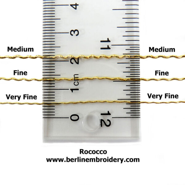 - Very Fine Rococco is the finest of the Rococco threads that I carry and is approximately 0.75 mm across the width of the thread.
