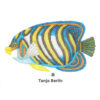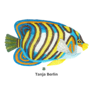 Each band is worked in a single strand of DMC embroidery giving the embroidery a lovely fine quality. In a few places on the design metallic thread is combined with the DMC embroidery cotton to create a sparkle to the surface of the angel fish.