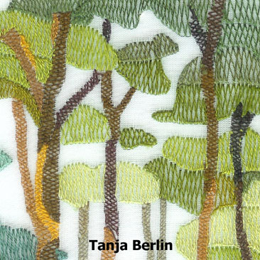 I have designed my shadow work embroideries as pieces of art. The forest looks lovely mounted between two window mat boards and hung from the corners like a mobile so that both sides of the embroidery can be seen.