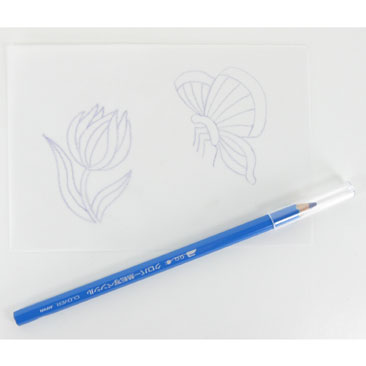 The blue chalk pencil is used to transfer a design from tracing paper to fabric.