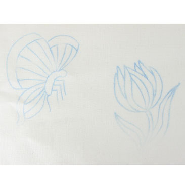 The water erasable marking pen has a pin-point tip that produces a very fine line. Use the pen for drawing embroidery designs onto fabric. When the embroidery is complete the blue pen line can be washed away.