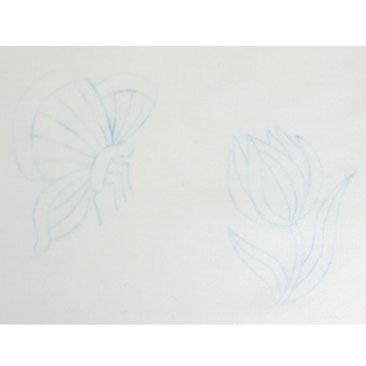 When you lift the tracing paper off the fabric you are left with a blue outline of your design. The transfer is permanent.