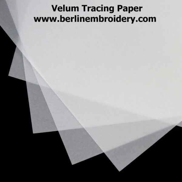 Gateway Vellum tracing paper is used for the prick and pounce method of transferring embroidery designs for surface embroidery onto fabric. It is thicker and more sturdy than regular tracing paper: 112 grams.